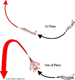 Ok this is something simple that takes place in the skies of Ys, but you might not realize it. In plane, if you are behind your bandit, or vis versa, heading toward the herizon then the person at six is in plane with your aircraft, if you suddenly pull a 8.0 G or in Ys a "20 G" vertical turn, and he rolls his lift vector left or right and pulls opposite of your six, he just pulled out of plane, meaning his jet is not going in the same motion of your jet now. This is simple geometry that a pilot should know.